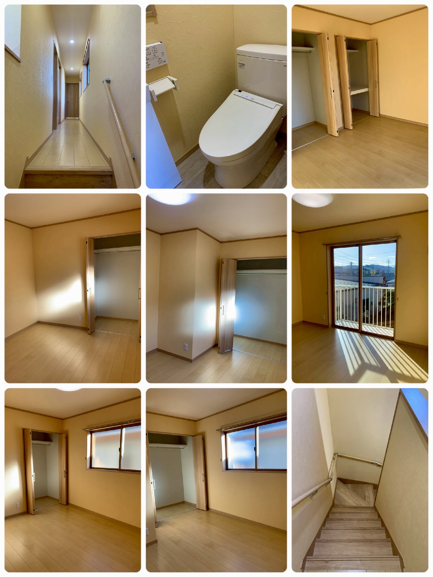 ・左上:2階の廊下 ・左中/左下:廊下の左にあるドアを開けると、1つめのお部屋があります。
