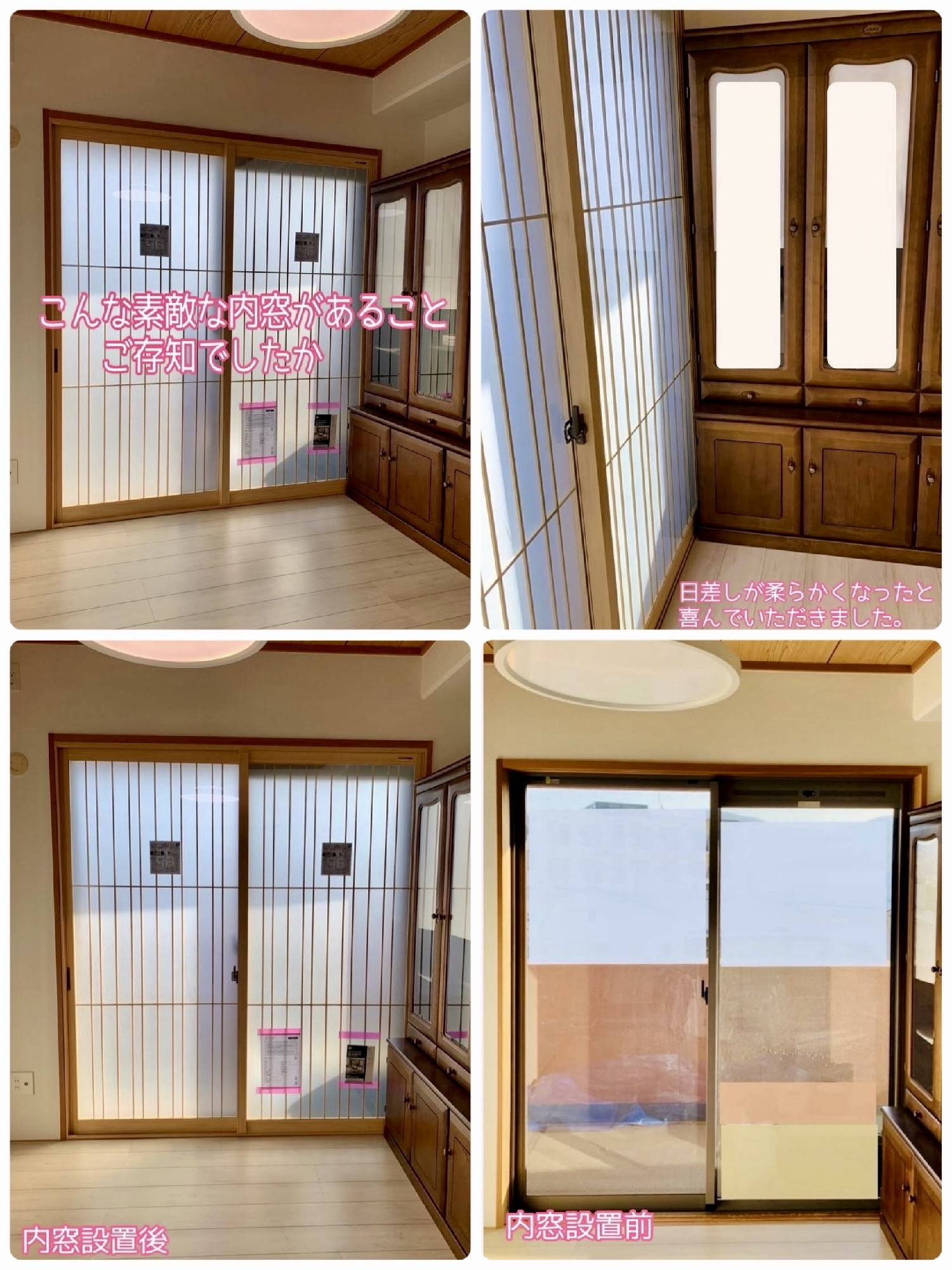 『日差しが柔く、エアコンの効きが上がり内窓を設置して良かったです」と、お施主様より嬉しい言葉をいただきました。