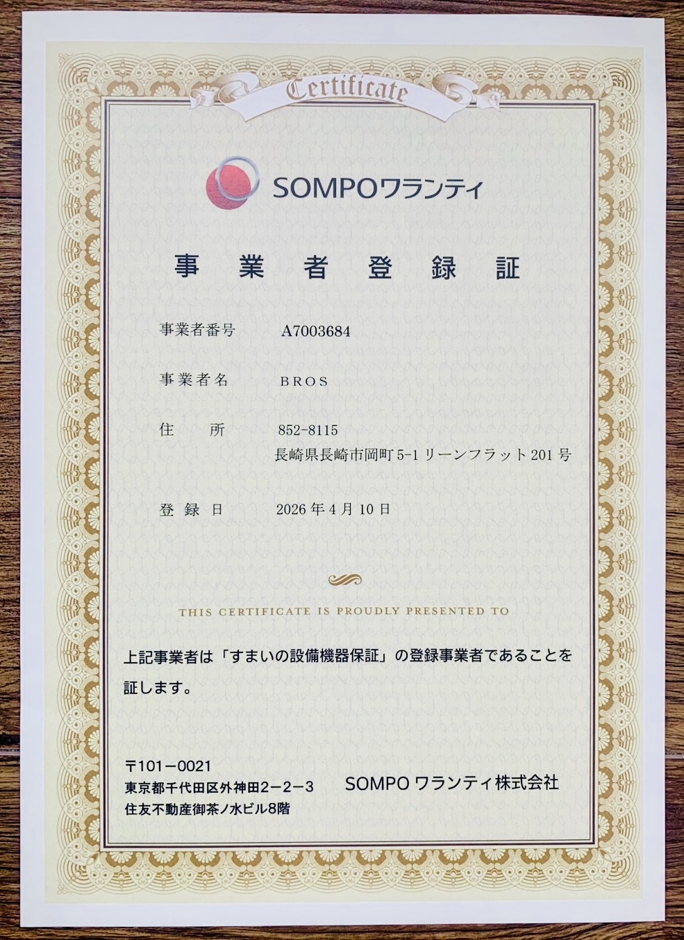 リノべ不動産長崎大橋店は、設備機器保証に登録された事業者です。