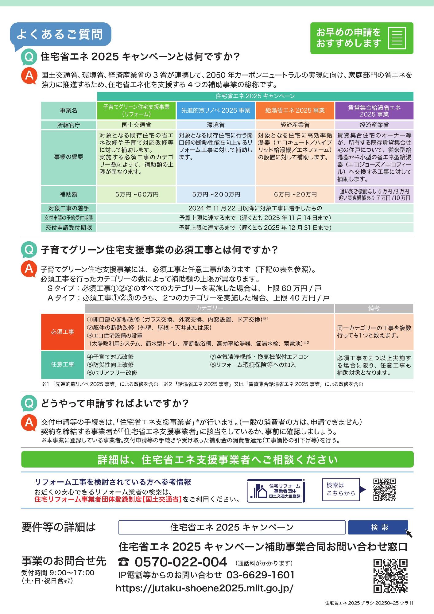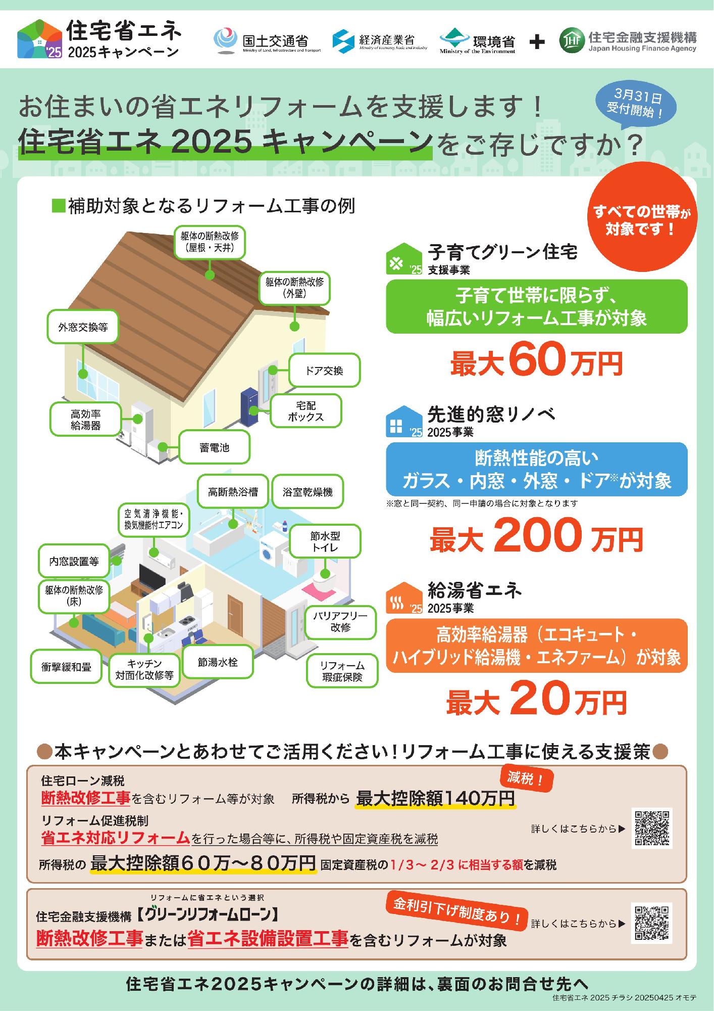 本年、令和7年に行われています「住宅省エネ2025キャンペーン」についてお知らせします。
