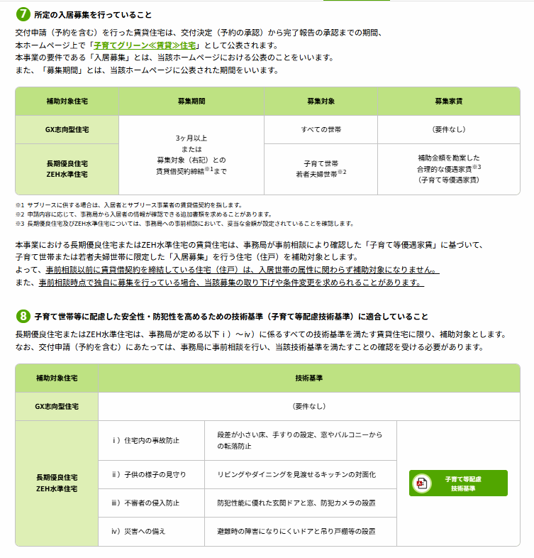 - 入居者募集の優先: GX志向型住宅以外の、長期優良住宅やZEH水準住宅で補助を受ける場合、新築後最初の3か月間は子育て世帯や若者夫婦世帯への入居を優先する義務があります。