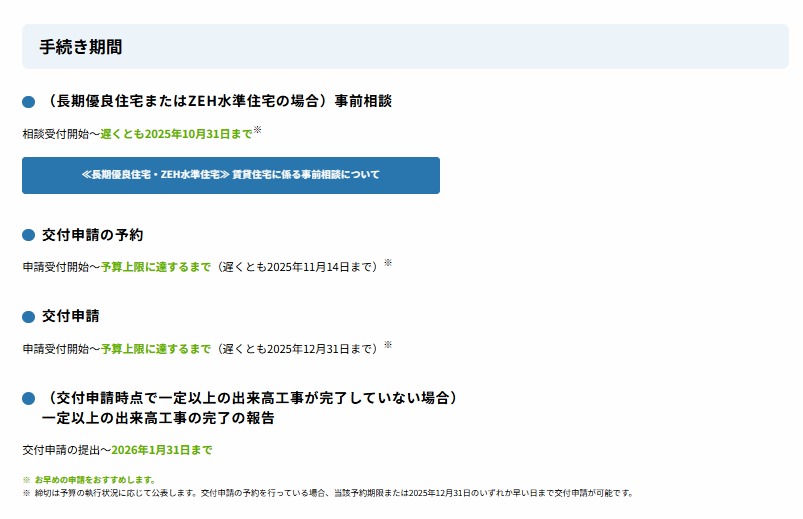 - 対象者: 子育て世帯または若者夫婦世帯、あるいはGX志向型住宅の場合はすべての世帯です。