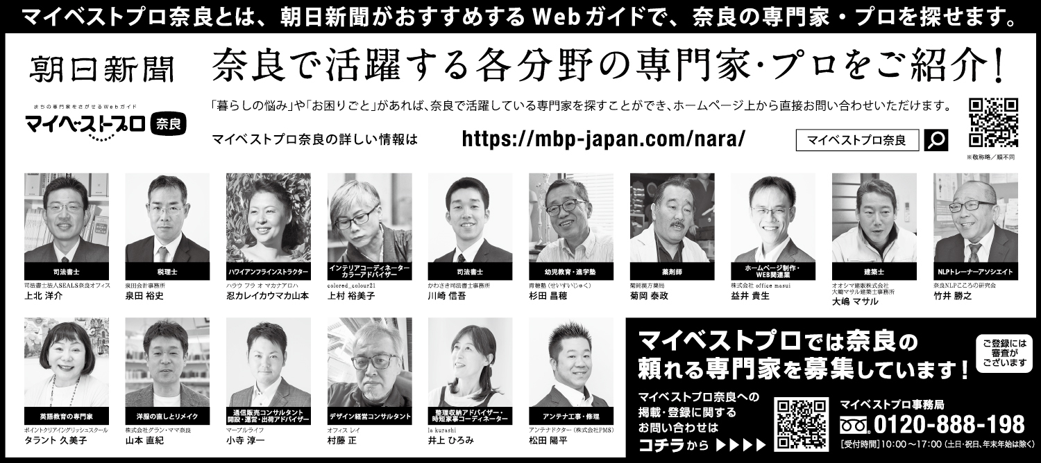 2025年4月16日(水)朝日新聞に「マイベストプロ奈良」顔写真広告掲載!
