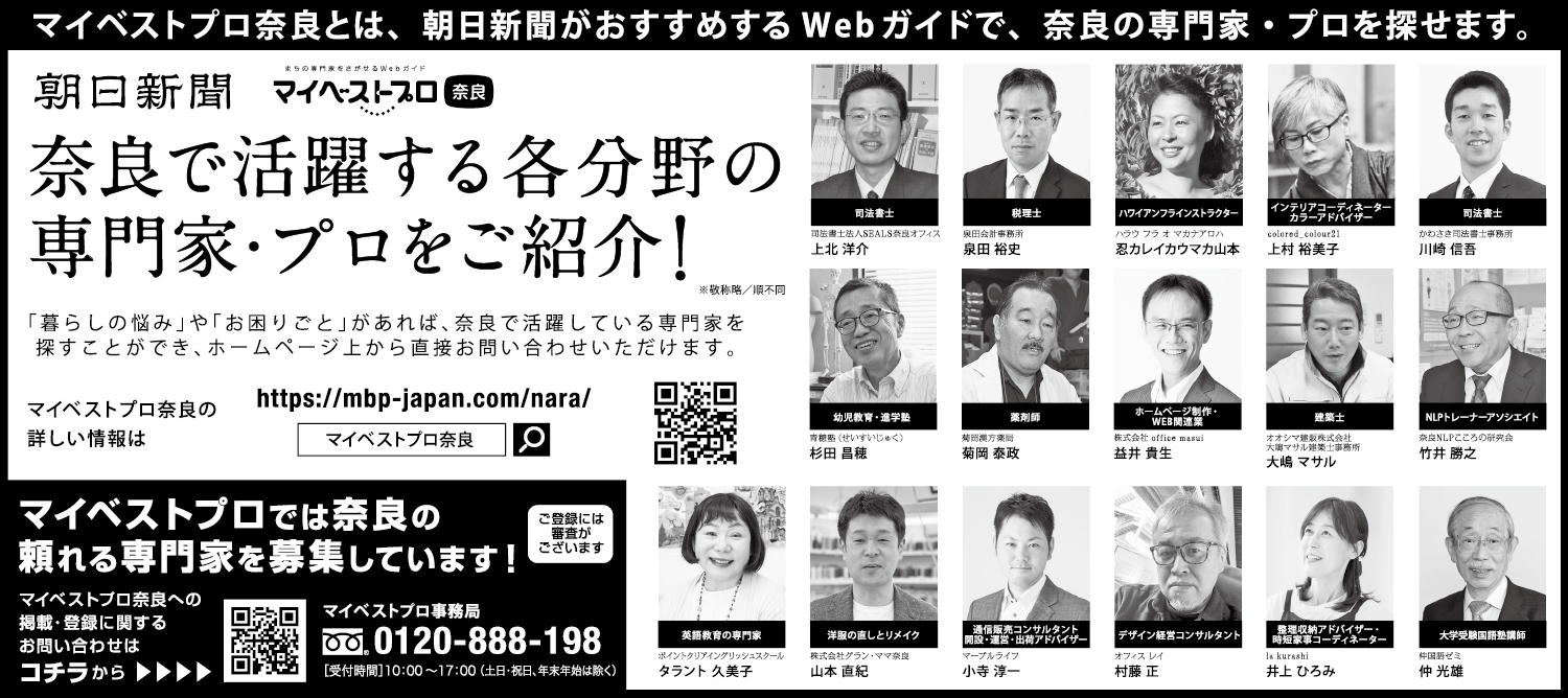 2026年1月15日(木)の朝日新聞に「マイベストプロ奈良」の顔写真付き新聞広告が掲載されました!