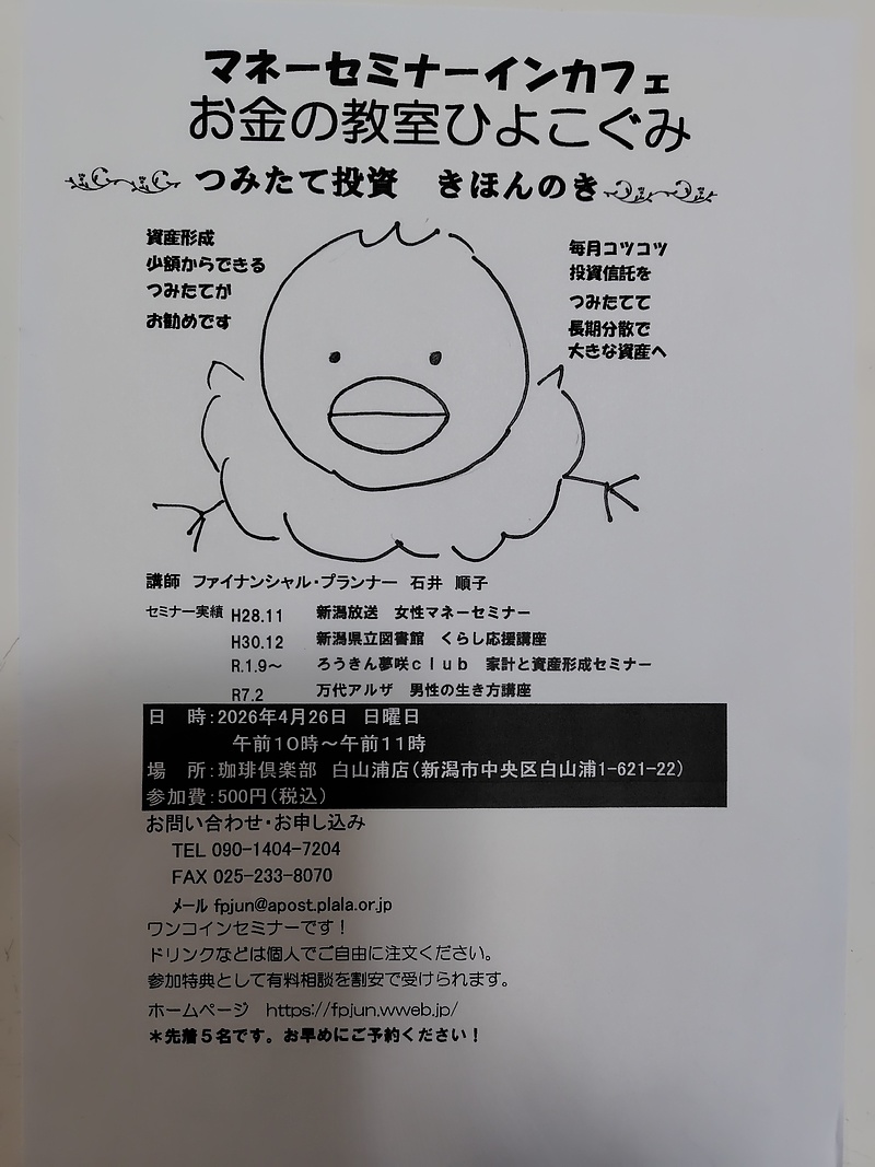 マネーセミナー お金の教室 ひよこぐみ 「新NISAのきほん」
