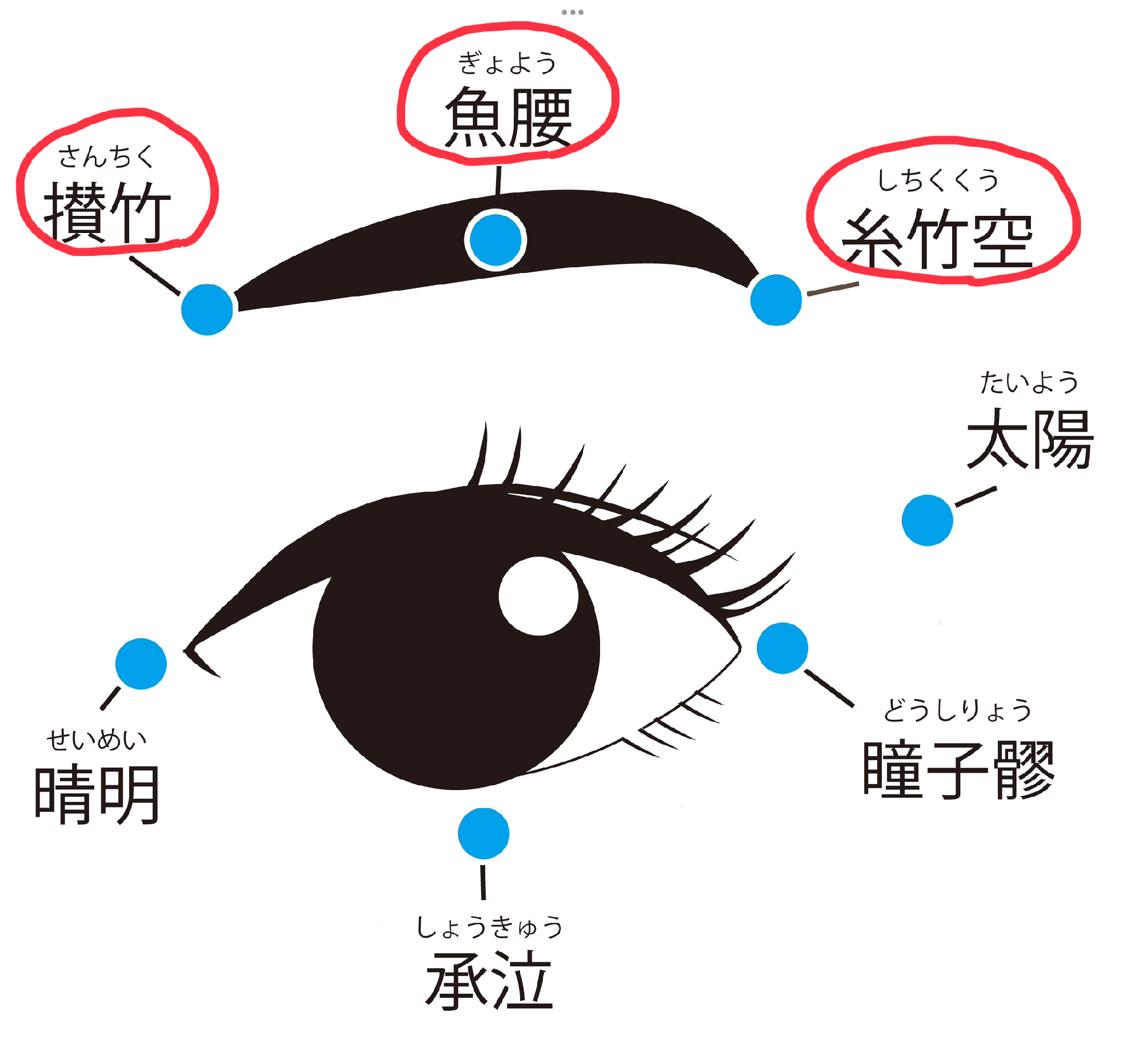 目尻にある「絲竹空(しちくくう)」などのツボを優しく押してみましょう。