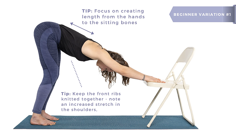手を前方に押し出し、腰を上げて「V」の形を作る。かかとを床に近づけるが、無理しない。