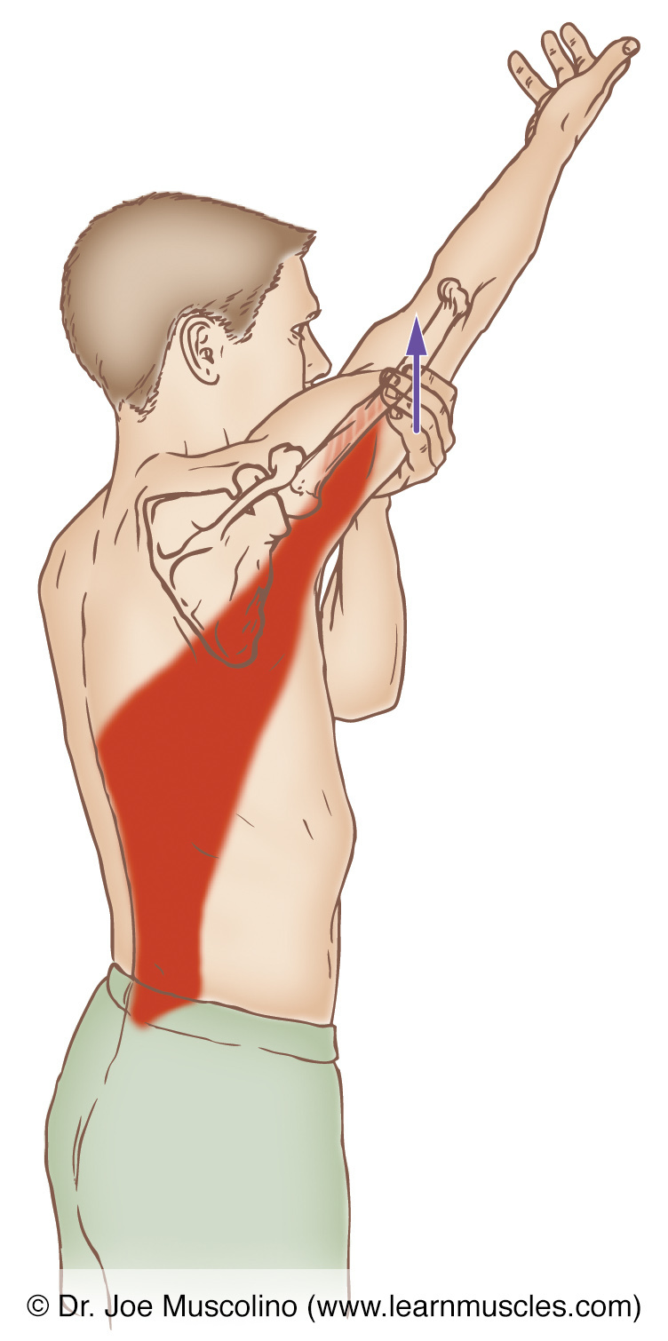 肘を真後ろに引くと、大円筋が固くなってくるので、そこで場所を確認します。