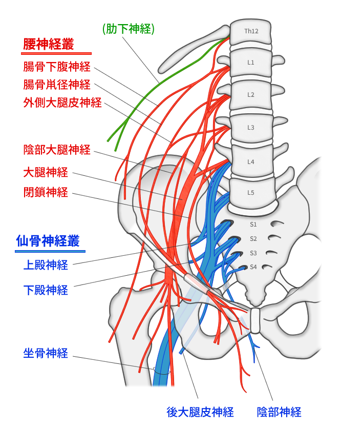 腸腰筋や大臀筋を支配し、ストレッチによる筋バランス改善で神経系の過剰刺激が抑制される。