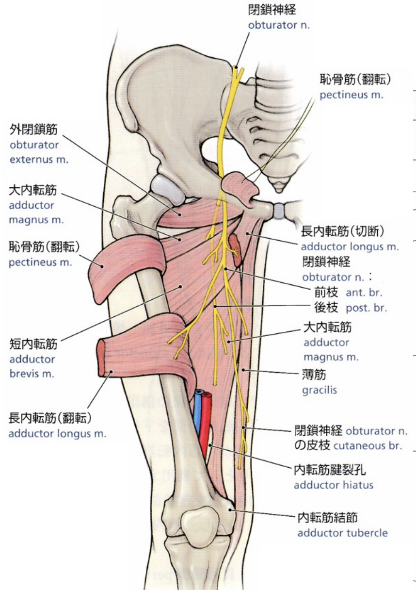 内転筋を支配し、ストレッチによる筋緊張の軽減で神経の圧迫が軽減される。