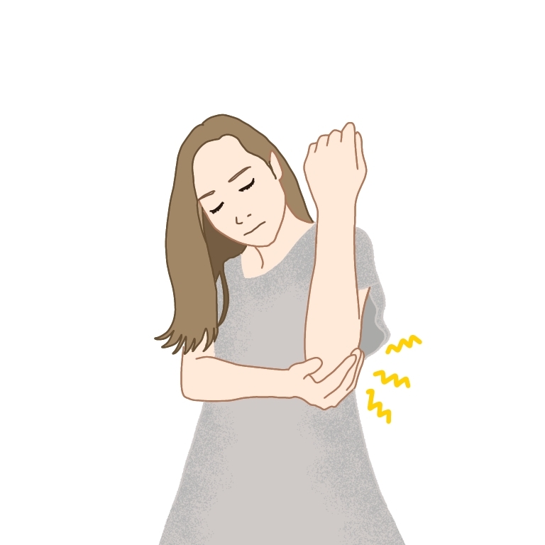 肘を曲げる動作で神経がさらに圧迫されると痛みが誘発されることがあります。