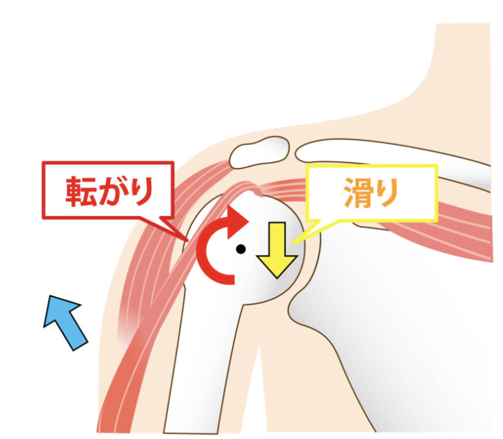 この関節のスムーズな挙上には、骨頭が下方滑りしながら
