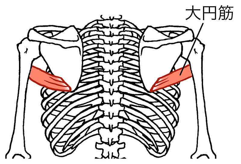 大円筋の硬さは、肩甲下筋や小円筋との相乗効果で制限を増悪。