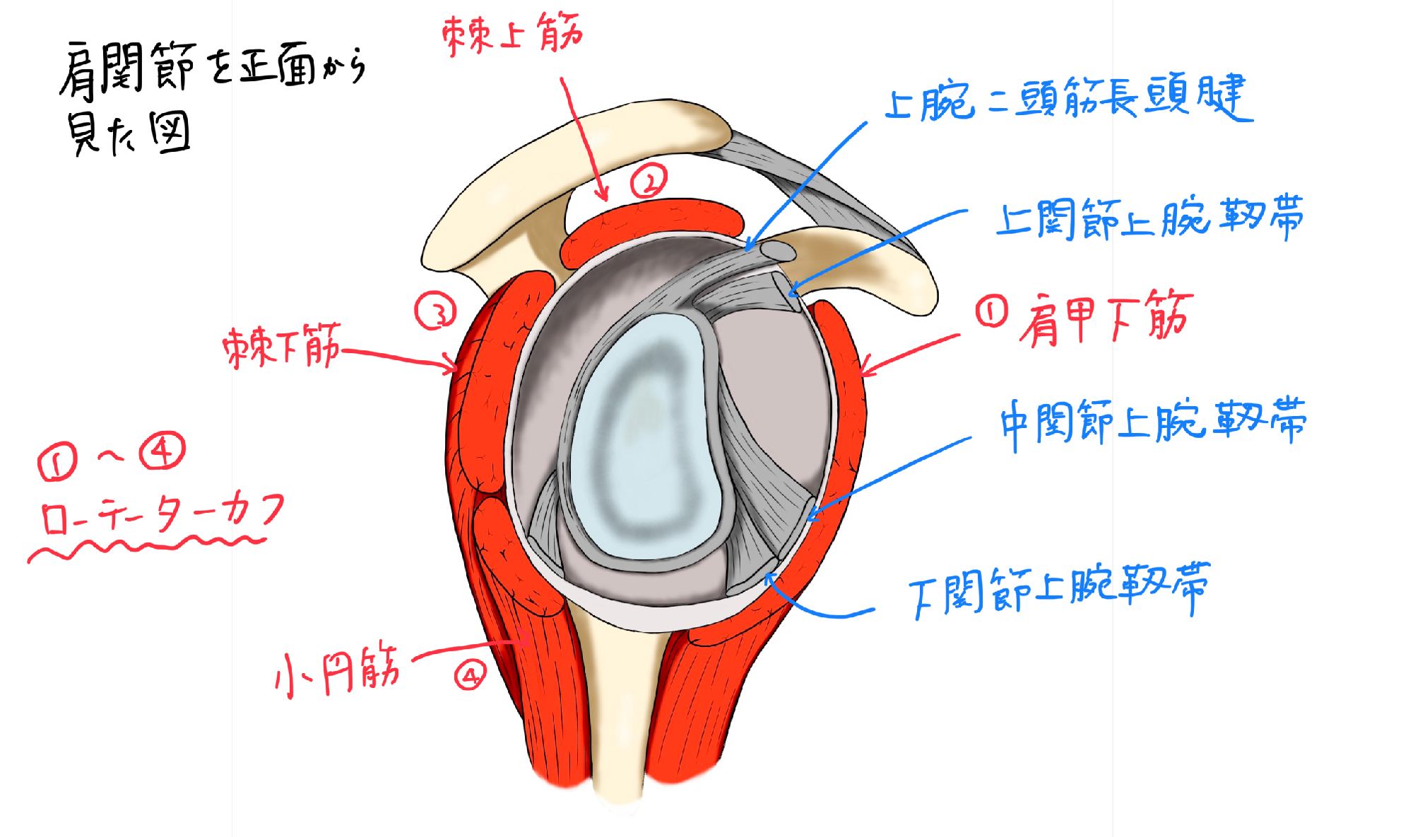 肩甲上腕関節は、肩甲骨の関節窩と上腕骨頭が形成する球関節で、