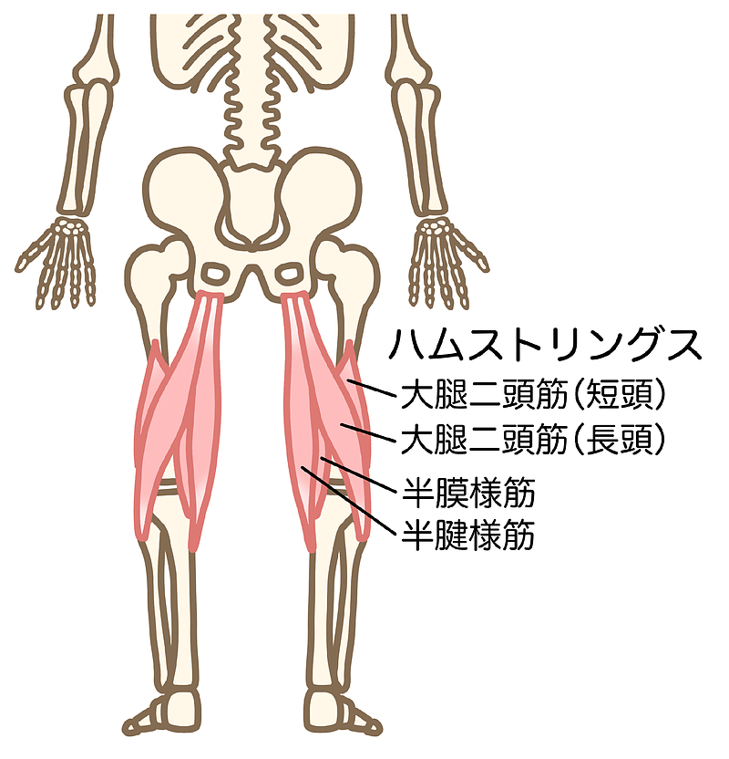 軽いハムストリングストレッチ(上記参照)で周辺筋の柔軟性を維持。