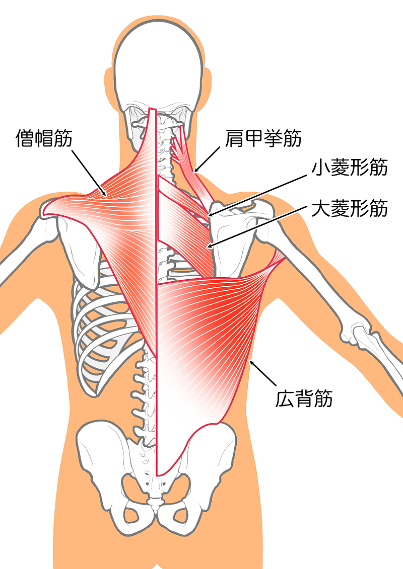 肩甲骨周辺の筋肉(大胸筋、僧帽筋、前鋸筋など)や筋膜の緊張は、