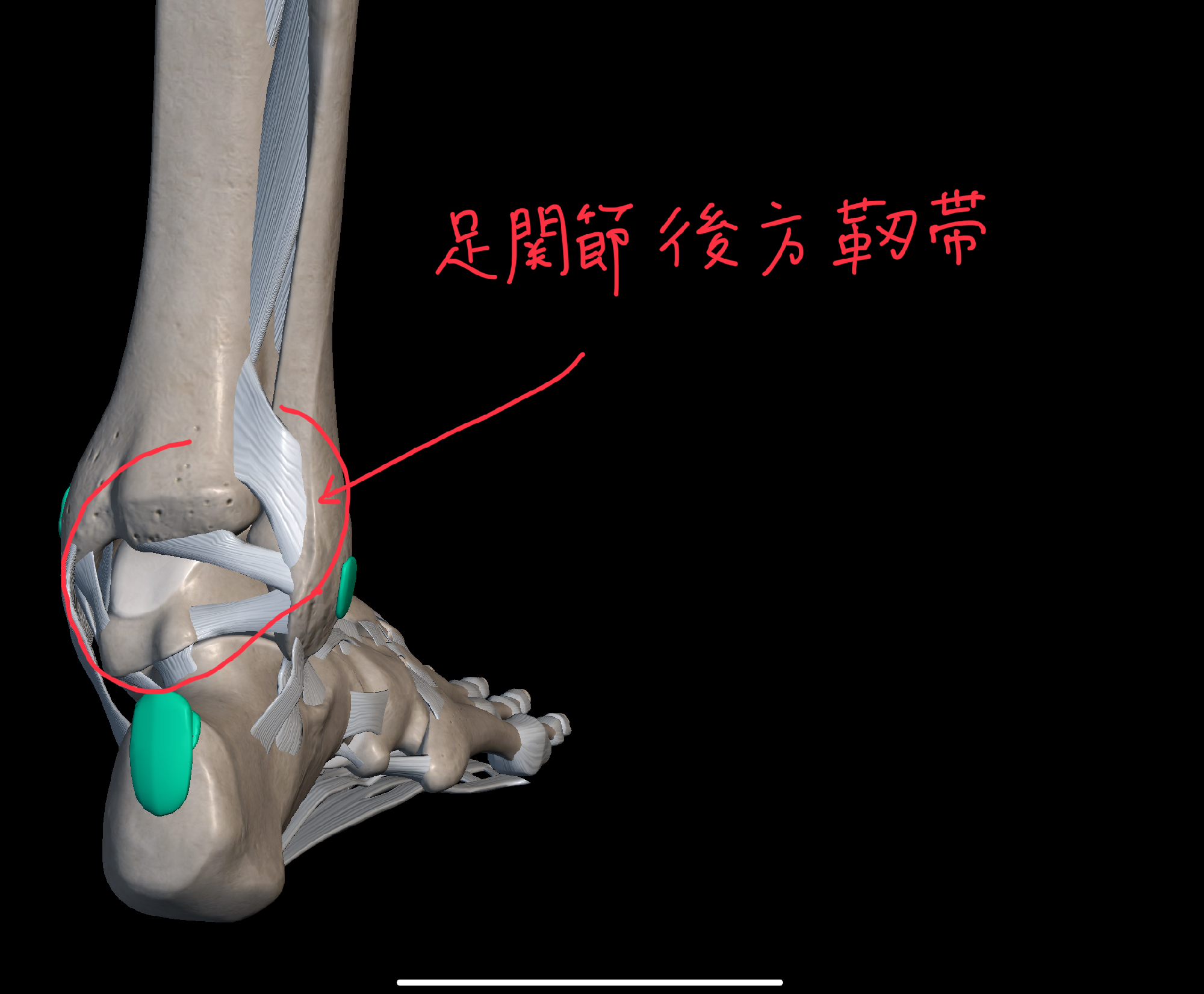 足関節の後方にある組織が短縮・硬化すると、背屈の最終域での