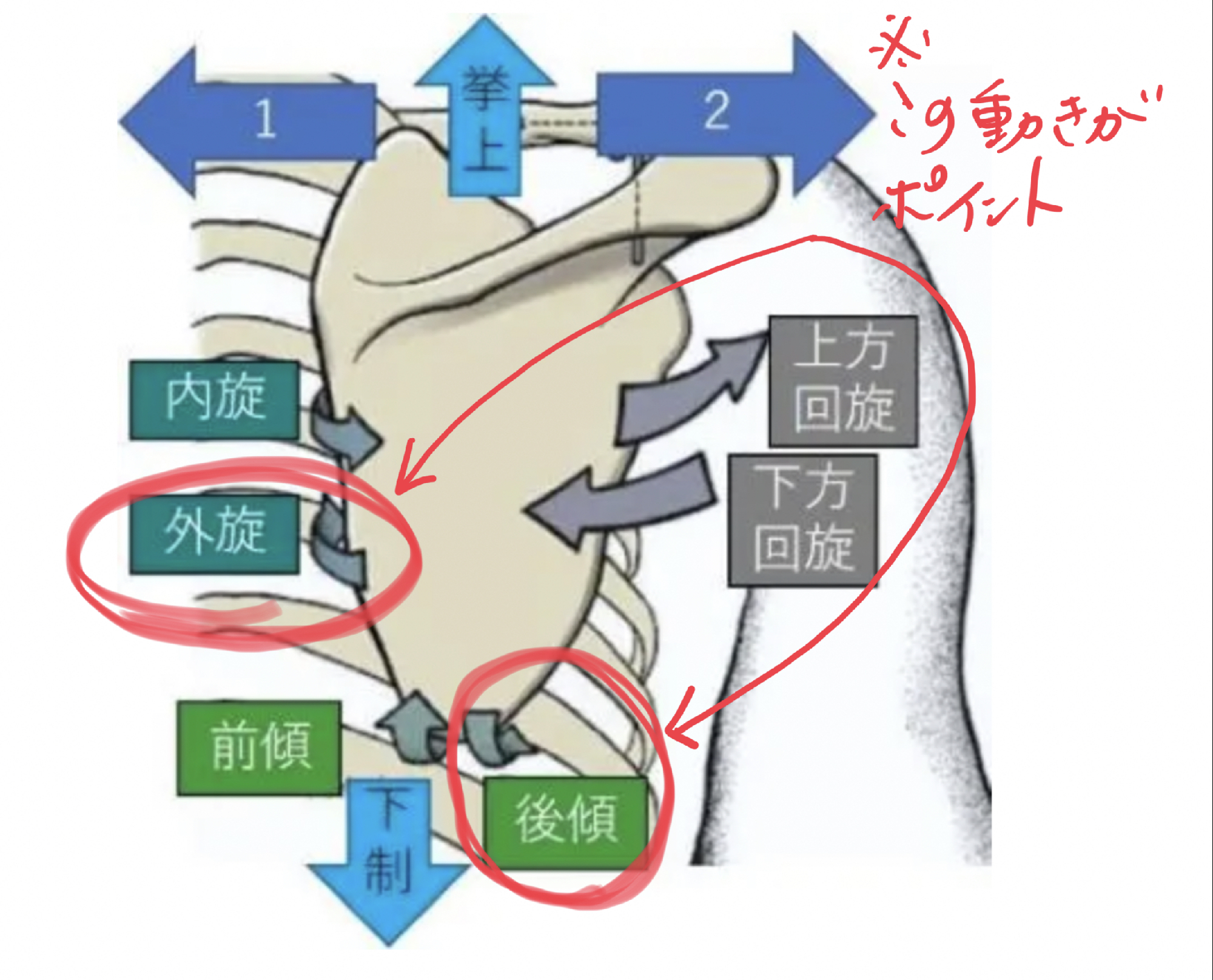 具体的には「上方回旋」「後傾」「外旋」の3つの動きが必須となります。