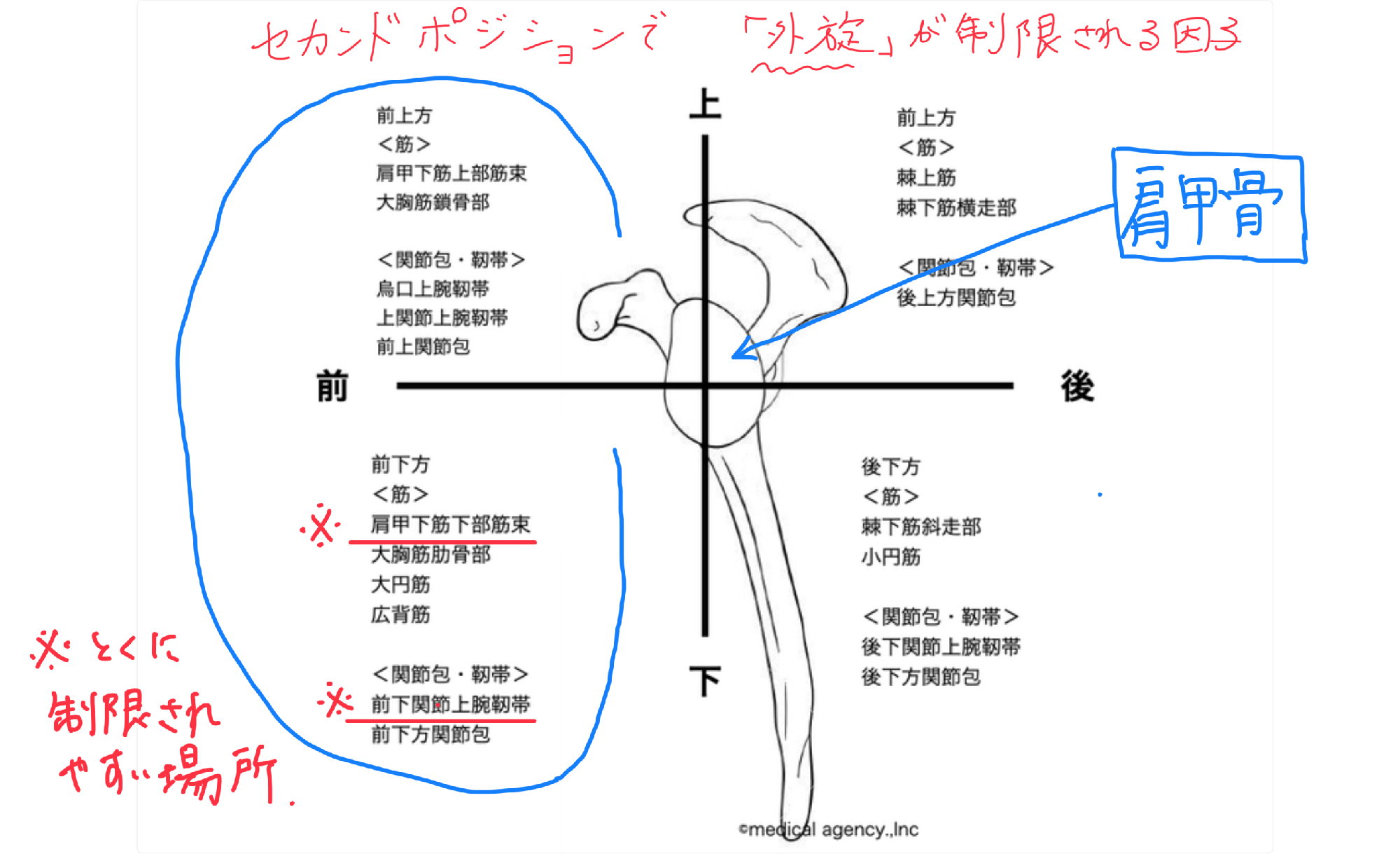 第2弾として、肩関節外転制限の鍵を握る「2ndポジション外旋」と、