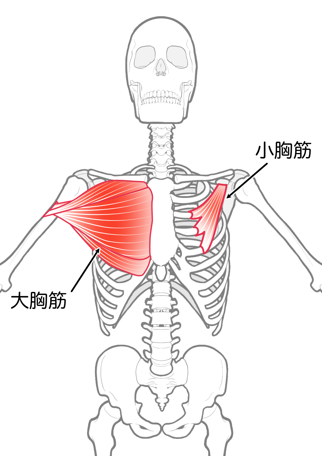 外転に必要な「後傾・外旋」を阻害する最大の要因は、胸の前にある筋肉の短縮です。