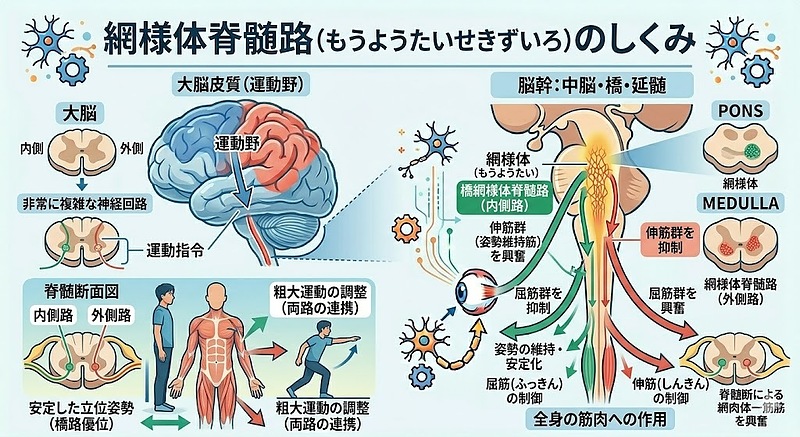 3-1. 網様体脊髄路(Reticulospinal Tract)による体幹のロック