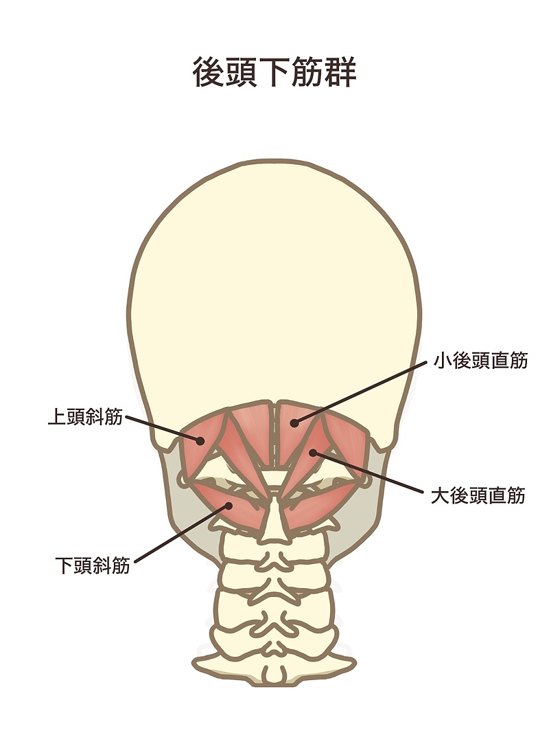 首の最上部(後頭骨〜C1・C2椎骨)周辺にある後頭下筋群には、