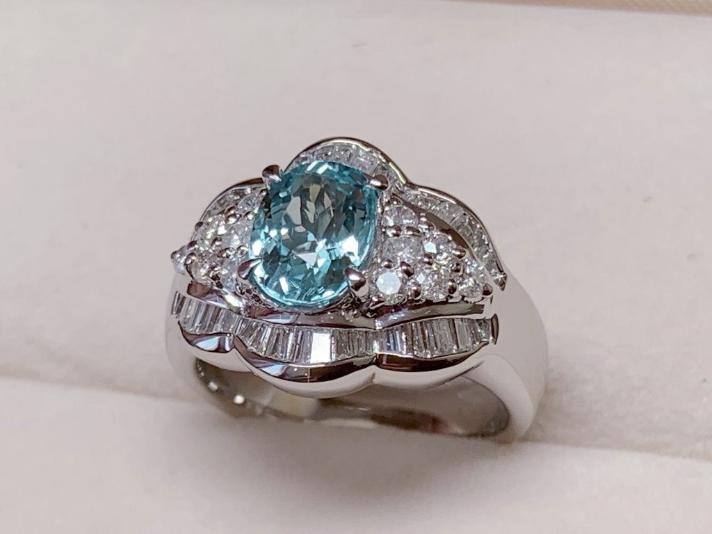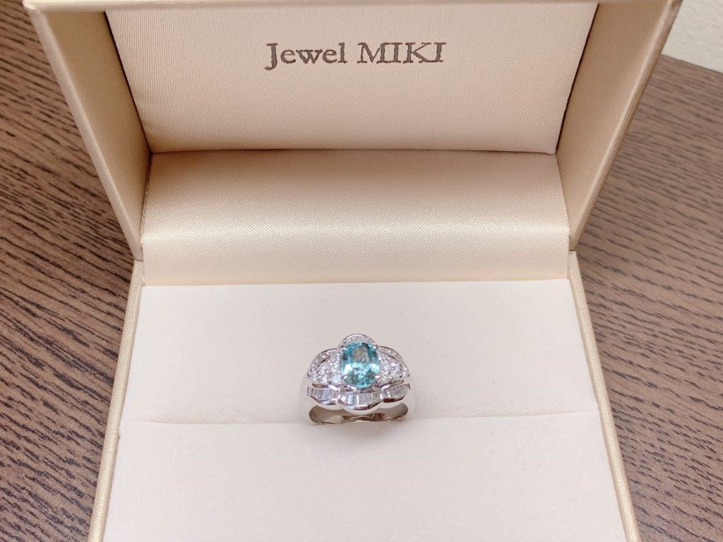 オーダーメイドしたパライバトルマリン&ダイヤモンドリングの完成です。
