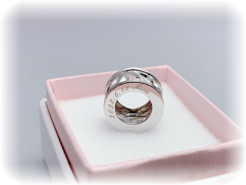出来上がりをご覧になり、「こちらのベビーリングで大正解です!とても素敵なベビーリングを購入することが出来ました。ありがとうございました」と、喜んで頂きました。