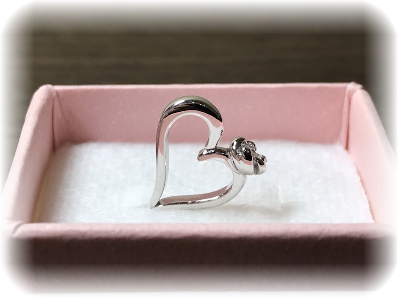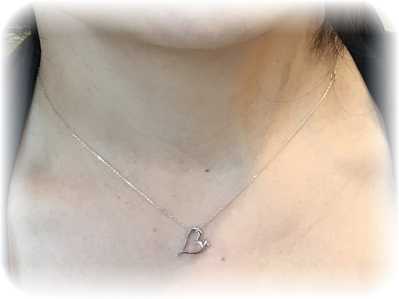 4月が誕生日ということで4月誕生石のダイヤモンドを、ハート&フラワーデザイン、Pt900でオーダーメイドされました。ネックレスはPt850ベネチアンネックレスに。スライドチェーン付きなので最長45cmから自由自在に長さ調節が可能な万能ネックレスです。