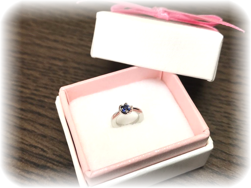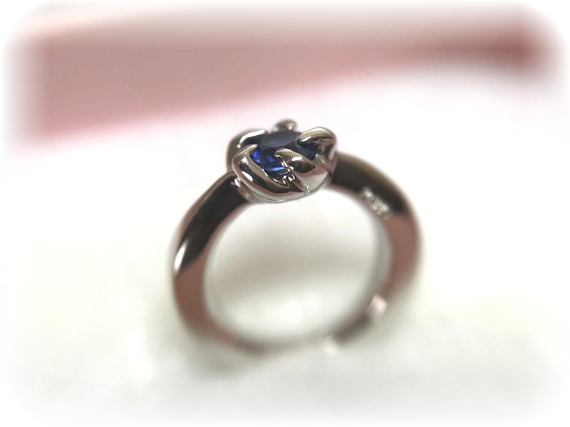 9月が誕生日ということで9月誕生石のサファイアを、シンプルリングデザインのPt900でオーダーメイドされました。