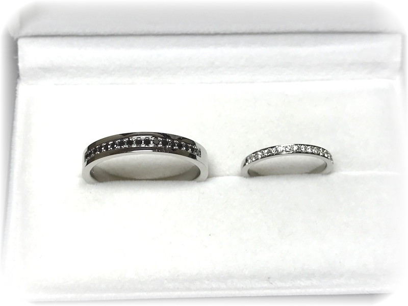 お二人とも、鍛造製法のハーフエタニティダイヤモンドリングをオーダーメイド。