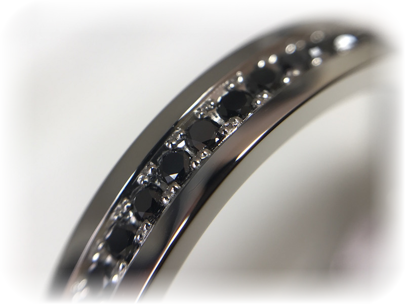 メンズはプラチナ950幅4mmで、ブラックダイヤモンドをハーフエタニティセッティングのデザイン。サイズが26号と特大サイズですが、鍛造製法で製作していますので、耐久性も問題ありません。