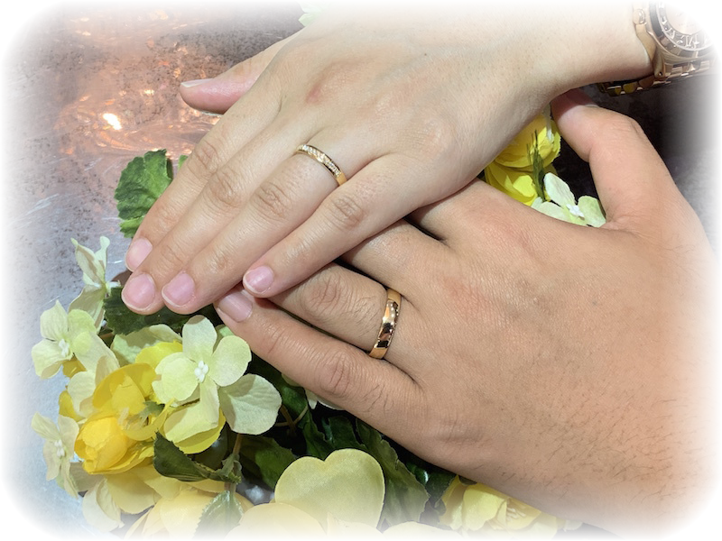 ご希望通り、お二人の素材はK18金イエローゴールドで作りました。