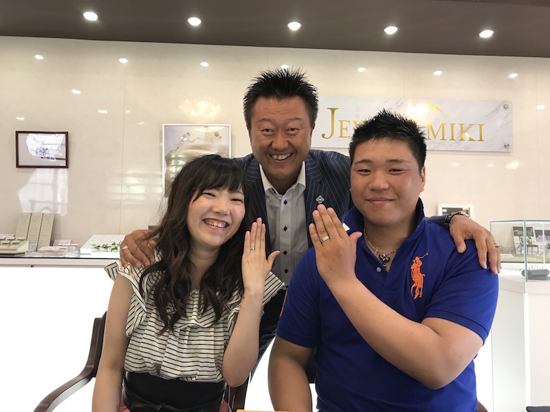 お二人とも出来上がりをご覧になって「おー!これはすごくいい!かっこいいですね。身近でこうやって結婚リングをオーダーメイドしてくれる専門店があって良かったです」と、喜んで頂きました。