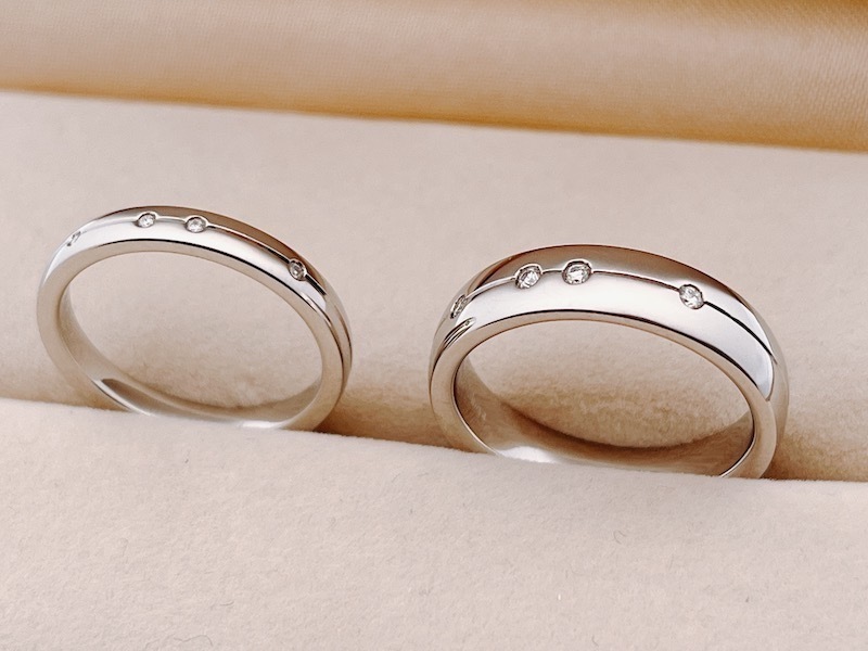 「シンプルなデザインであること、でもありきたりなデザインではないこと、できれば自分達でちょっとオーダーメイド的なことができること、そしてずっとつけられるちゃんとした指輪であること。それを求めてたくさんのジュエリーショップやブランドを見て回って来ました」と、来店予約を頂きお二人で来られました。