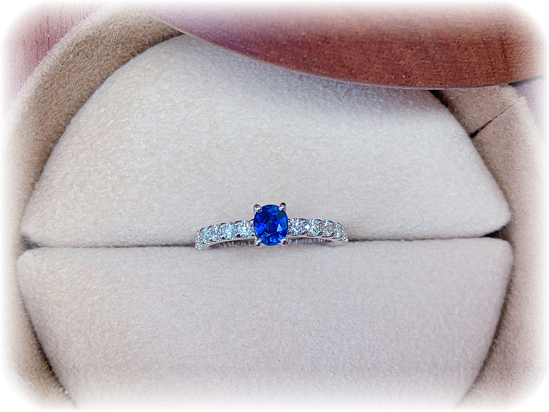 お母様のサファイヤ婚約指輪をリメイク、新しい婚約指輪にリフォームした逸品はエタニティデザイン。