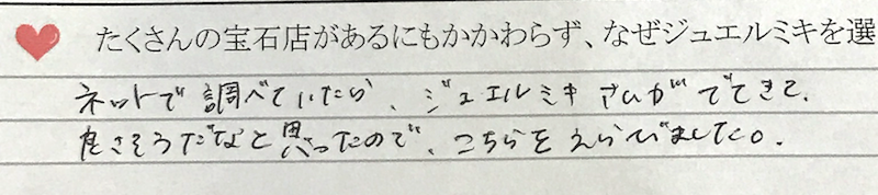 「ネットで調べていたら、ジュエルミキさんがでてきて、良さそうだなと思ったので、こちらを選びました。」