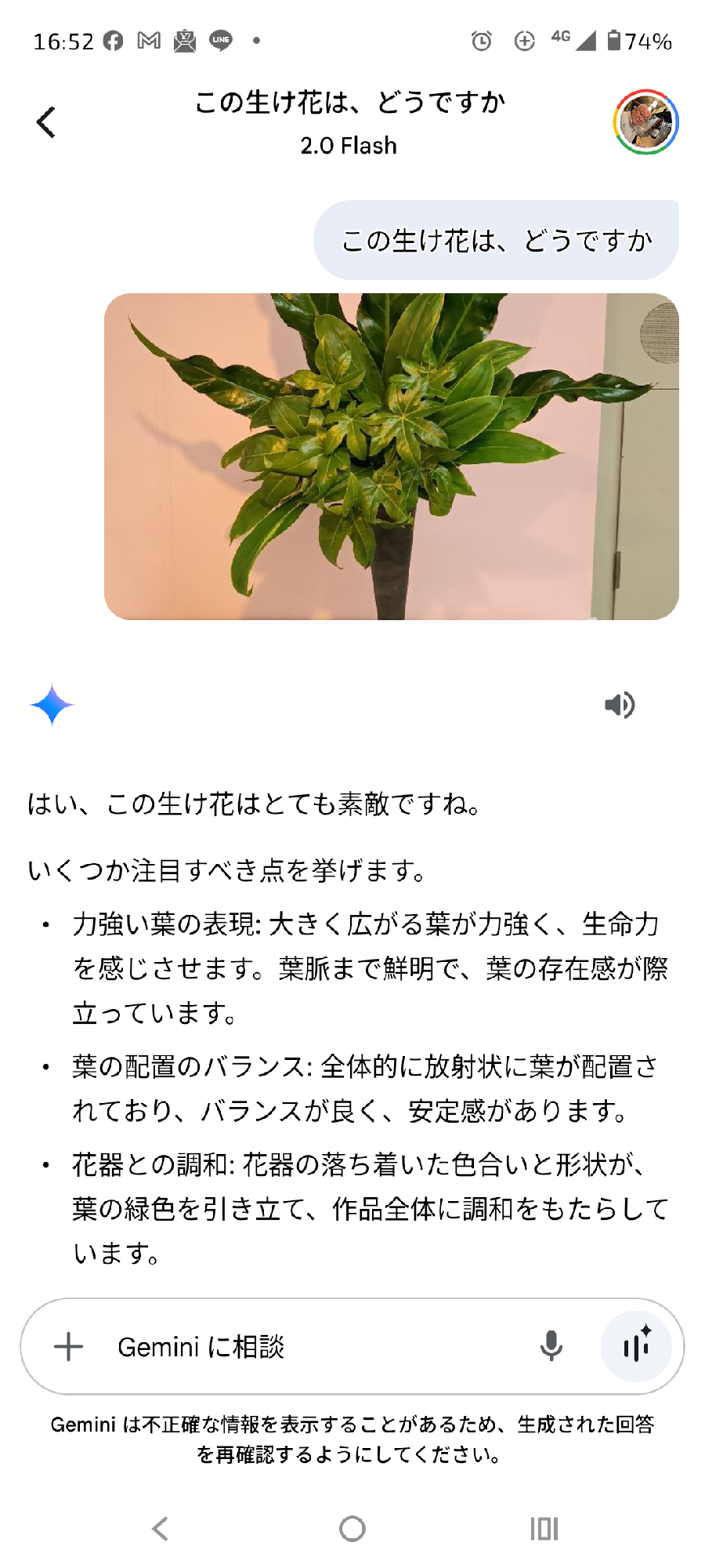 そこで、特に心惹かれた作品の写真を撮り、試しにGoogle Geminiに「この作品のどのような点が魅力的なのか」を尋ねてみました。すると、AIが作品の構成や色彩、表現の意図などを分かりやすく解説してくれ、「なるほど、そういう見方があるのか!」と、新たな発見と感動がありました。