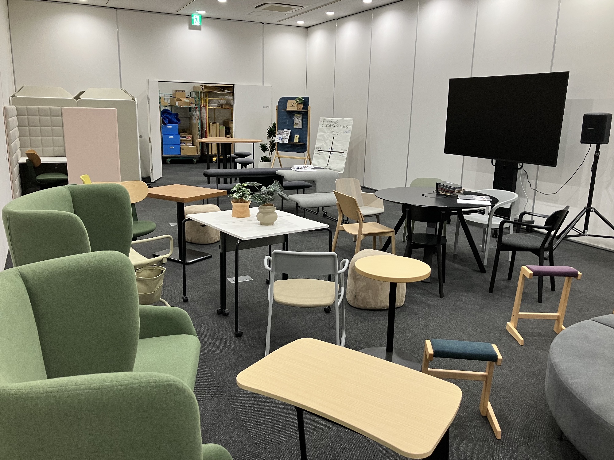 カリモク家具さんやKOKUYOさんなどがモダンな机や椅子を出展していました。