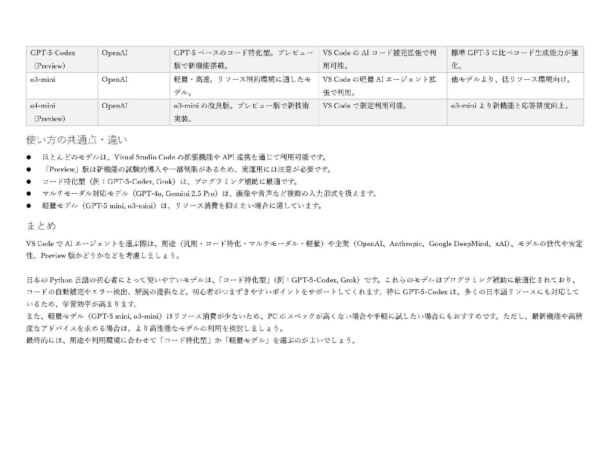 現在、VS Codeでは、開発元や得意分野の異なる、様々なAIエージェント(モデル)が利用可能です。それぞれに個性があり、まるで従業員一人ひとりのスキルが違うように、AIにも得意なこと、不得意なことがあります。