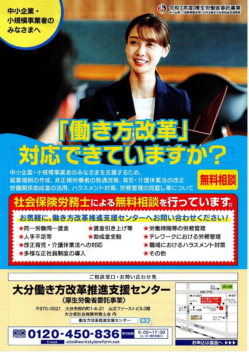 大分働き方改革推進支援センター | 働き方改革特設サイト | 厚生労働省 (mhlw.go.jp)
