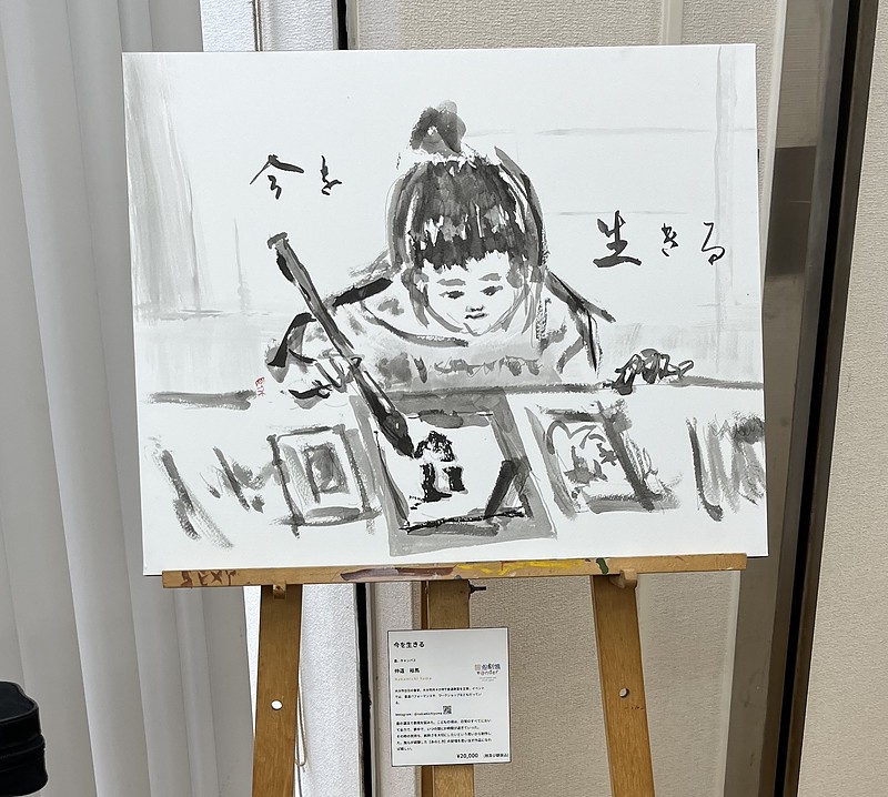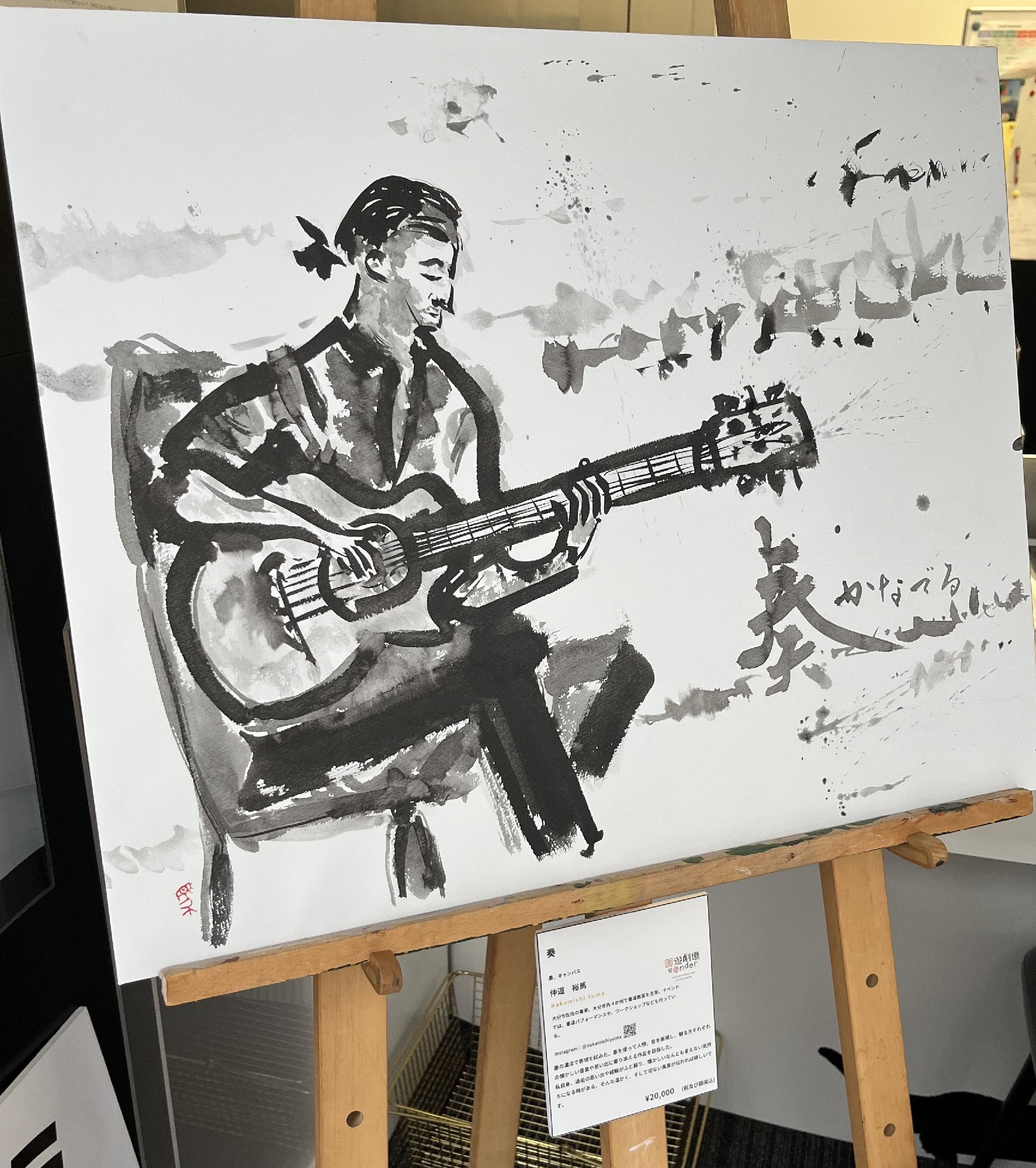 ギターを弾いている方とその音を墨を使って表現してみました!