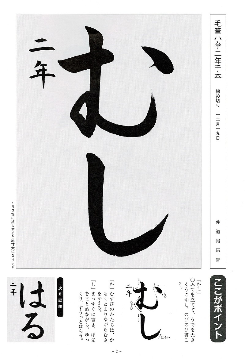 【大分県習字11月号 小学2年生毛筆参考手本】