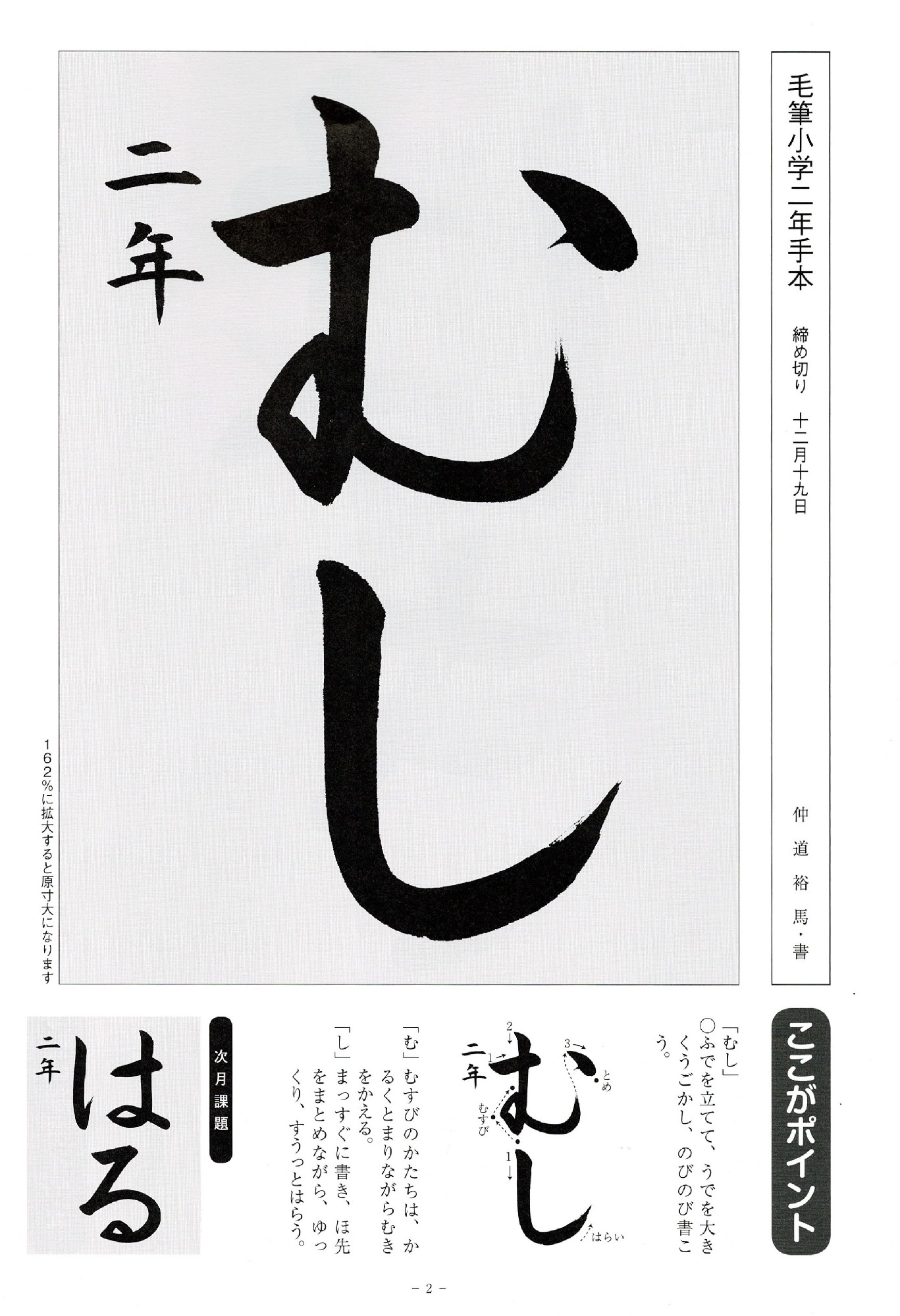 【大分県習字11月号 小学2年生毛筆参考手本】