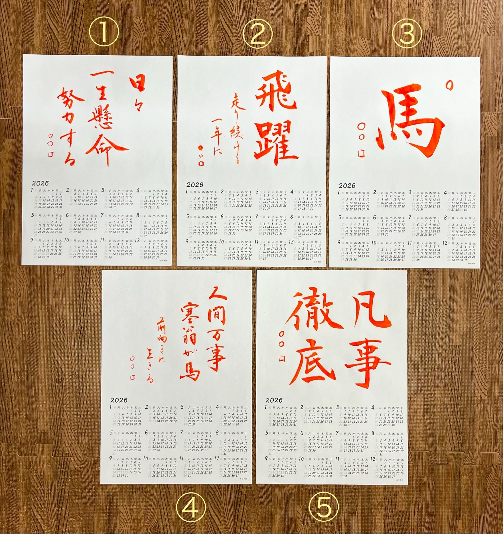 今日は、来年のカレンダーに書く文字を考えていました!