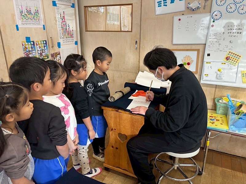 普段は鉛筆なので、筆は難しかったみたいですが、