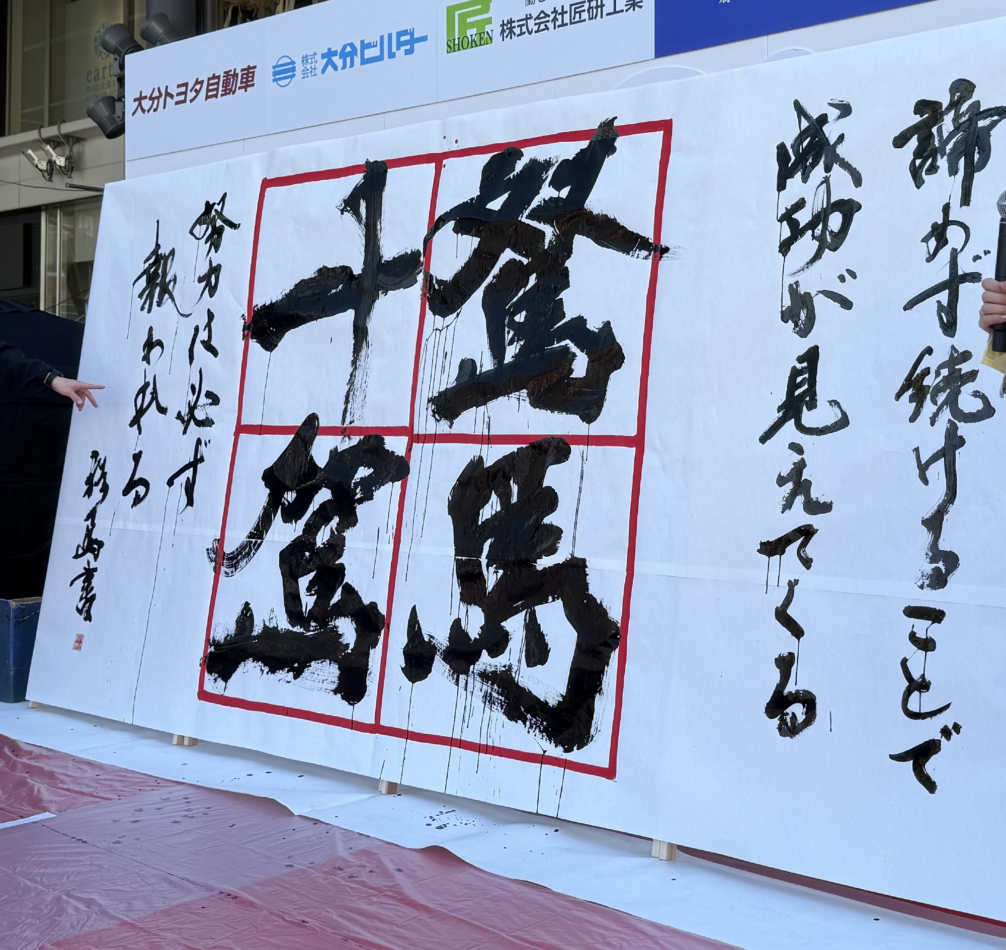 書道パフォーマンスの前に、