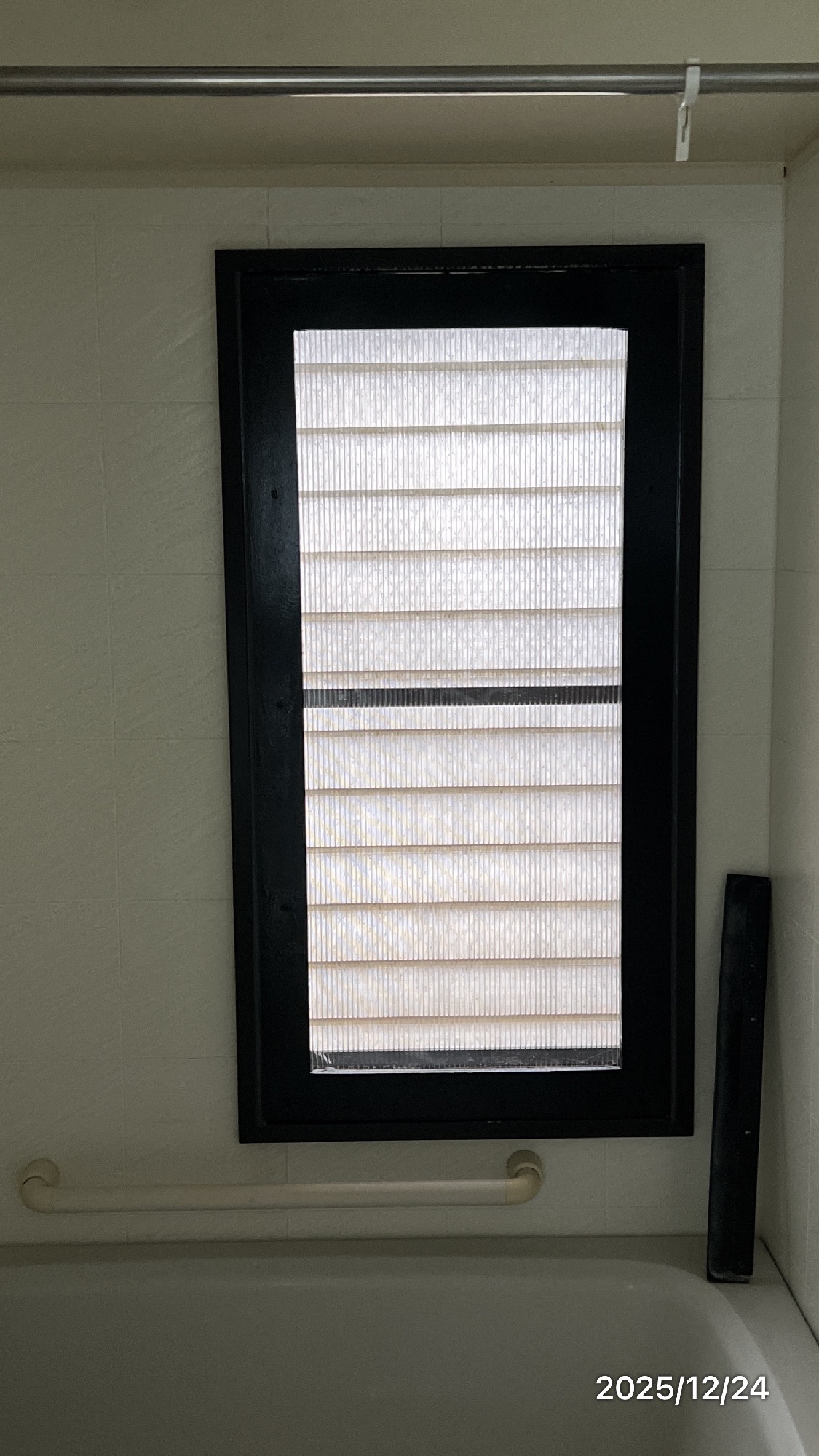 タカラスタンダードの洗面台取り換え後クロス貼り工事前の写真ジャロジーの窓は冬場,隙間風で寒いです。手作りの内窓でシャットアウト#洗面所のリフォームはエコネット#大分市のリフォーム店