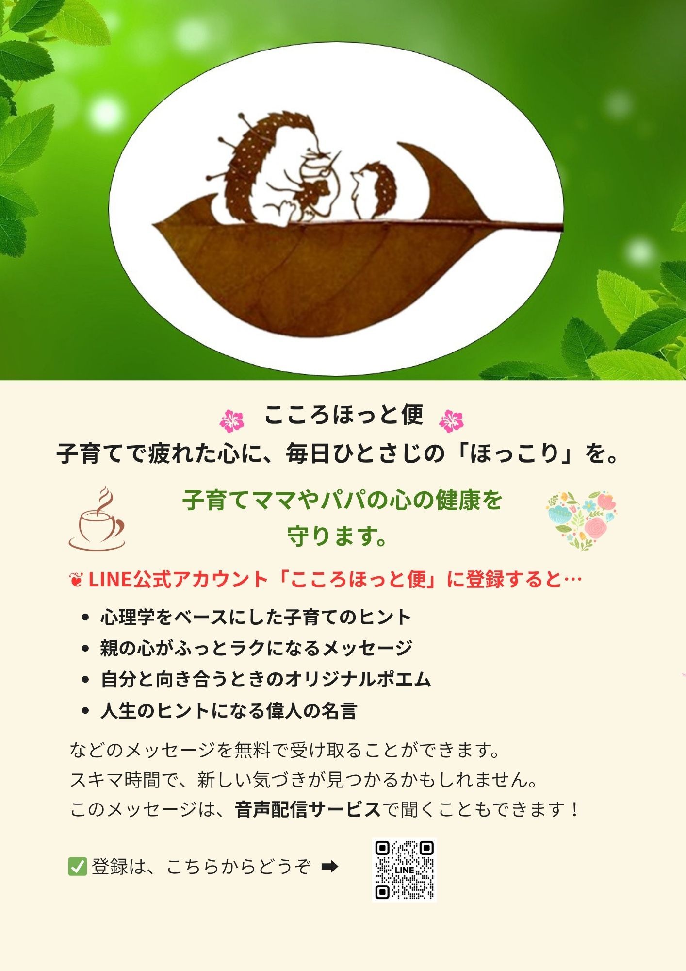 LINE公式アカウント「こころほっと便」は、こちらから。