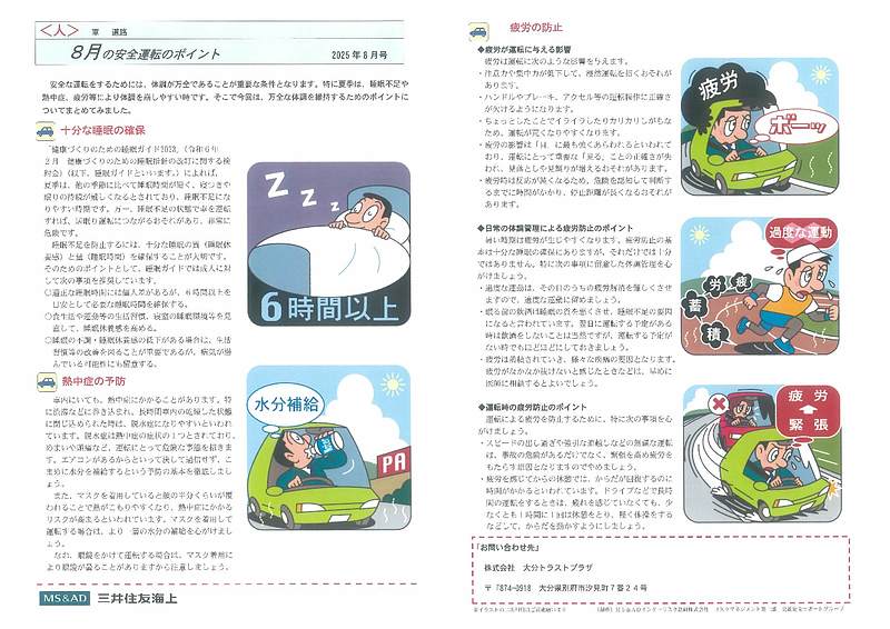 安全な運転をするためには、体調が万全であることが重要な条件となります。特に夏季は、睡眠不足や熱中症、疲労等により体調を崩しやすいときです。そこで今回は、万全な体調を維持するためのポイントについてまとめてみました